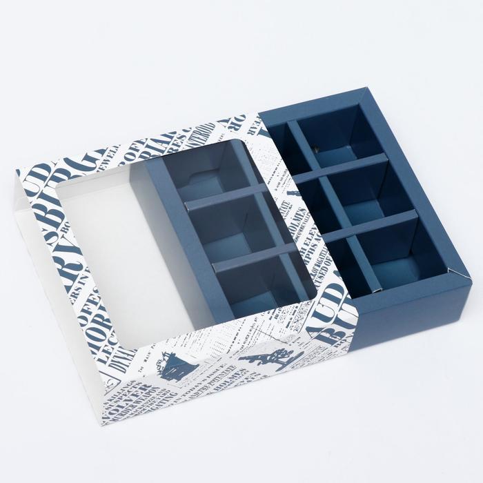 Коробка под 9 конфет с обечайкой « Пресса » с окном 14.5×14.5×3.5 см — Характеристики
