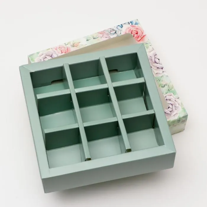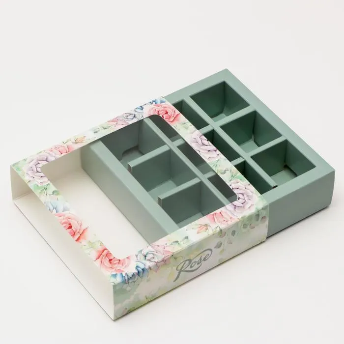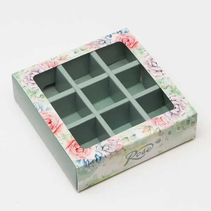 Коробка под 9 конфет с обечайкой Rose с окном, 14.5×14.5×3.5 см — Характеристики