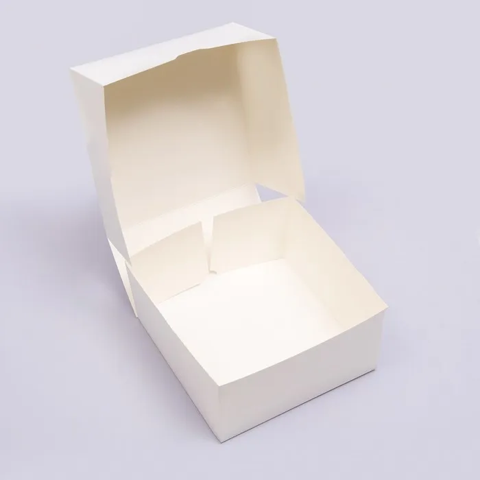 Картонная коробка для различных кондитерских изделий легко и быстро собирается как крафт, так и белой стороной наружу, а в разобранном виде не занимает много места.