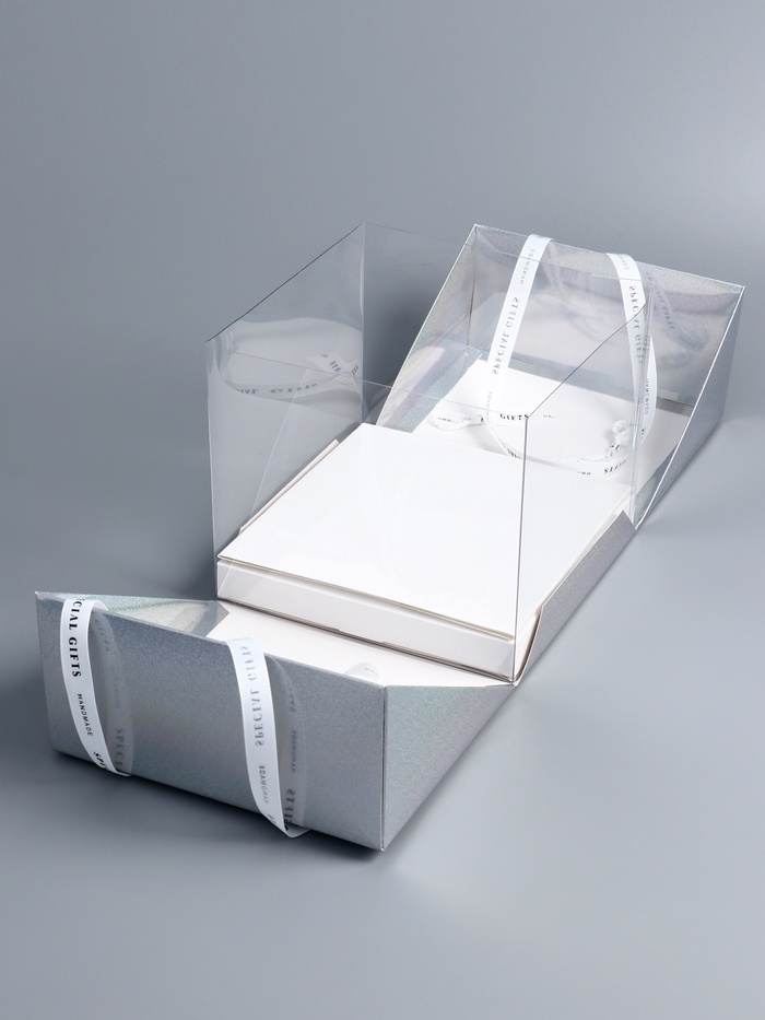 Изготовлена коробка из прочного и долговечного материала – ПВХ, что гарантирует надежную защиту вашего торта от механических повреждений и воздействия окружающей среды. Серебристый цвет придает упаковке благородство и элегантность, делая её подходящей для самых важных событий и праздников.