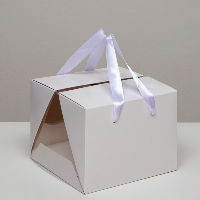 Коробка под бенто-торт с ленточками, белая, 18×18×14 см — Характеристики