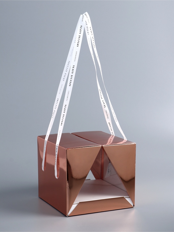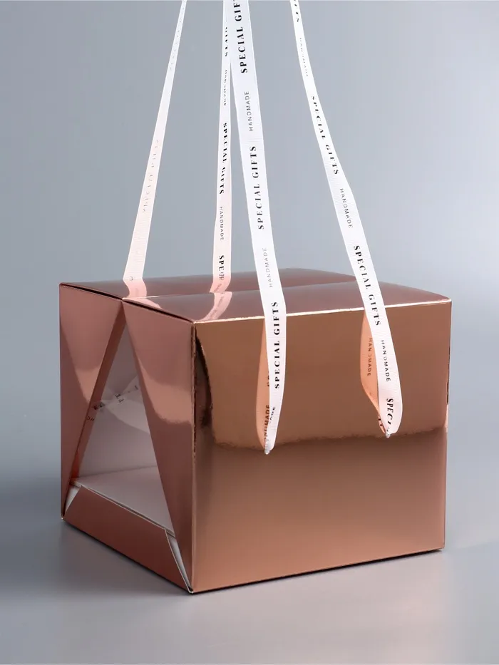 Розовая основа коробки ассоциируется с нежностью, романтичностью и теплотой, а золотистые акценты привносят элемент роскоши и элегантности. Такая комбинация цветов делает коробку идеальным выбором для подарков на особые события, такие как дни рождения, свадьбы, юбилеи или другие важные праздники.