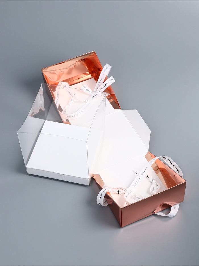 Картонные боковинки, открывающиеся как лепестки цветка, добавляют коробке изысканности и уникального шарма. Такое дизайнерское решение превращает распаковку торта в настоящий ритуал, наполненный магией и предвкушением наслаждения вкусом.