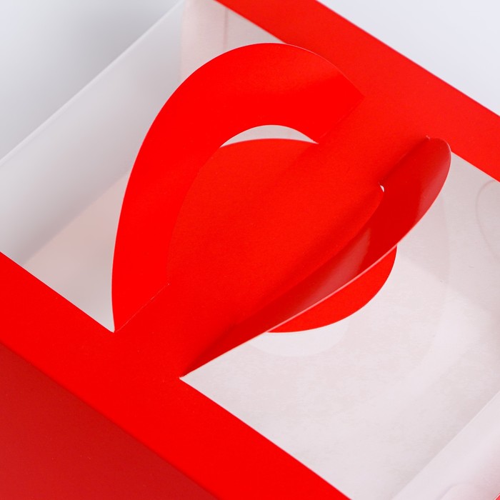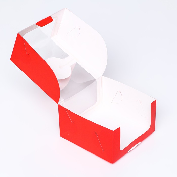 Коробка под бенто - торт с окном, алый, 14×14×8 см — Характеристики