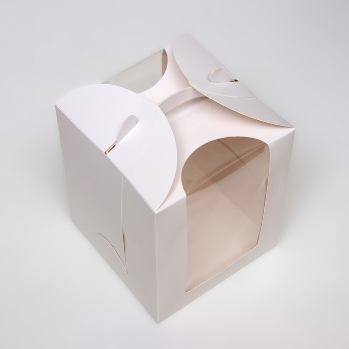 Коробка под бенто-торт с окном, белая, 15×15×18 см — Характеристики