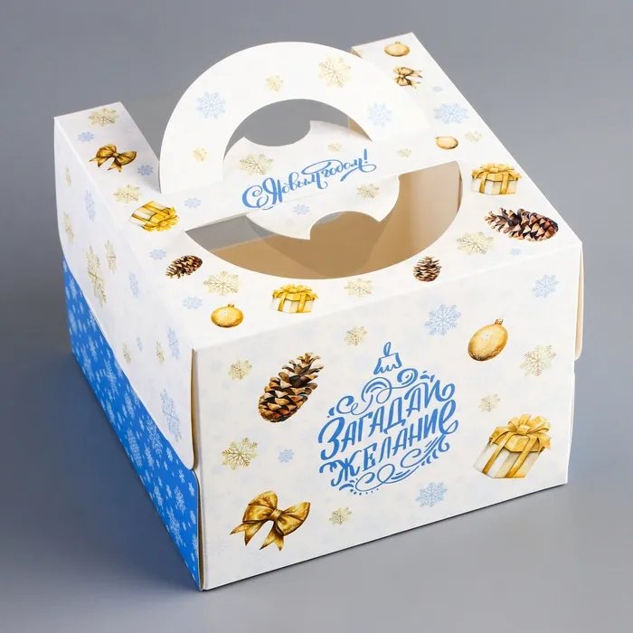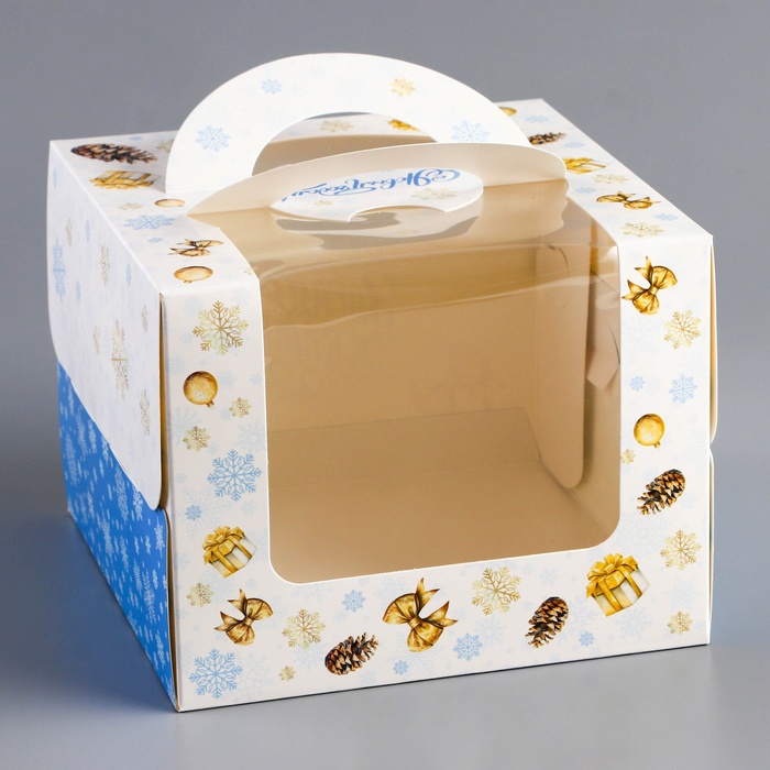 Компактный размер коробки делает её идеальной для порционных тортов, а праздничное оформление — отличным выбором для подарка, новогодних мероприятий или продаж в кафе и кондитерских.
