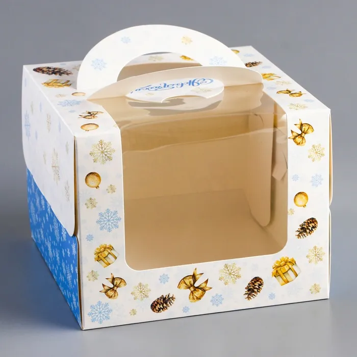 Новогодняя коробка для бенто-торта с окном — это стильная и праздничная упаковка, разработанная специально для небольших тортов, которые станут идеальным подарком или угощением в зимний сезон.