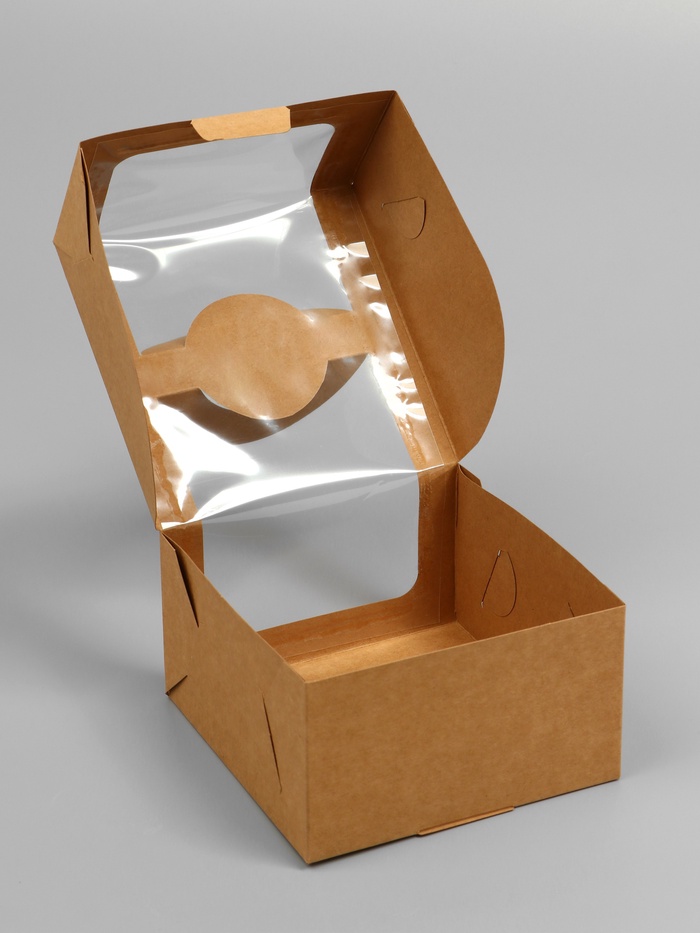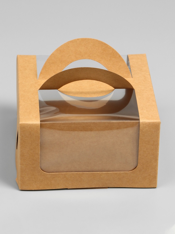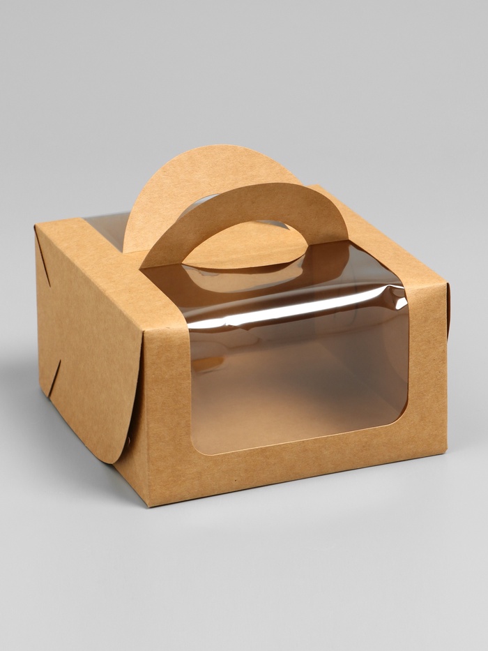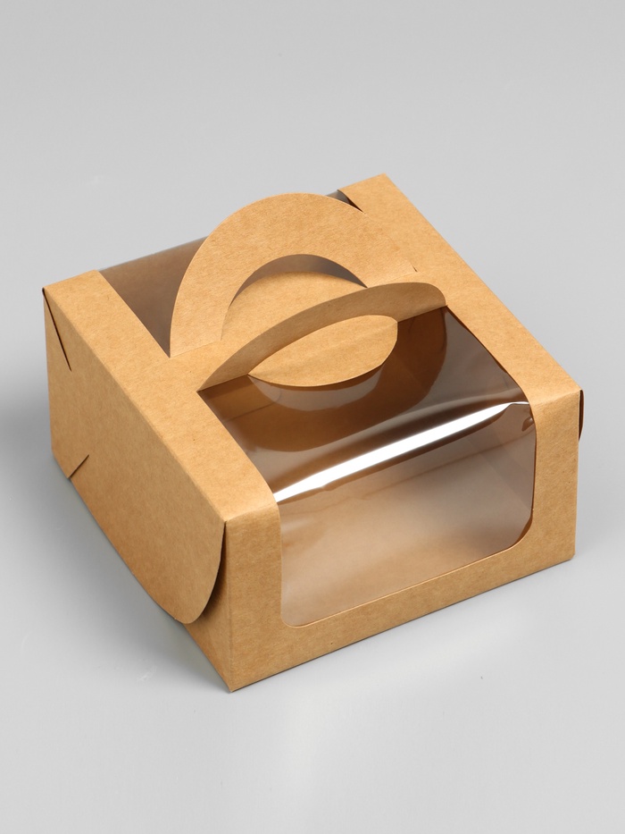 Коробка под бенто-торт с окном, крафт, 14×14×8 см — Характеристики