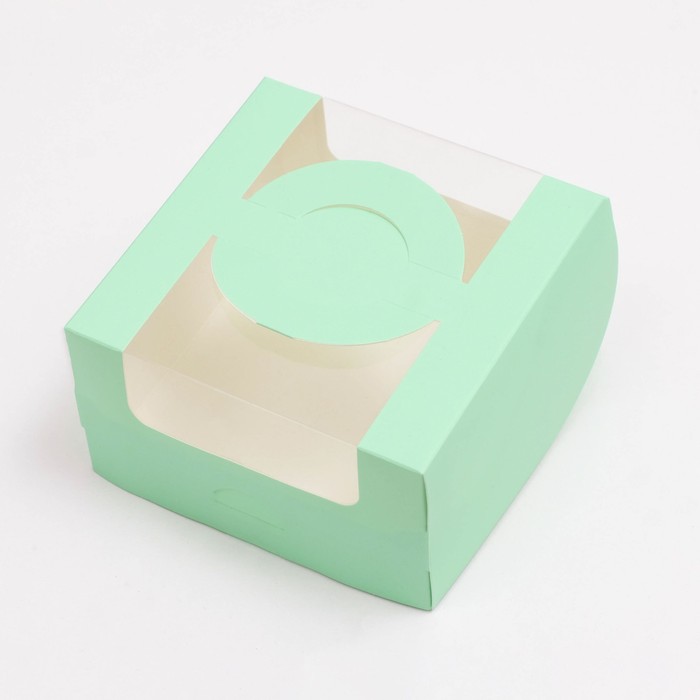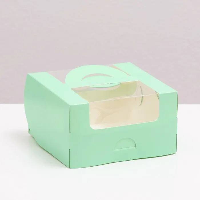 Коробка под бенто - торт с окном, мятный, 14×14×8 см — Характеристики