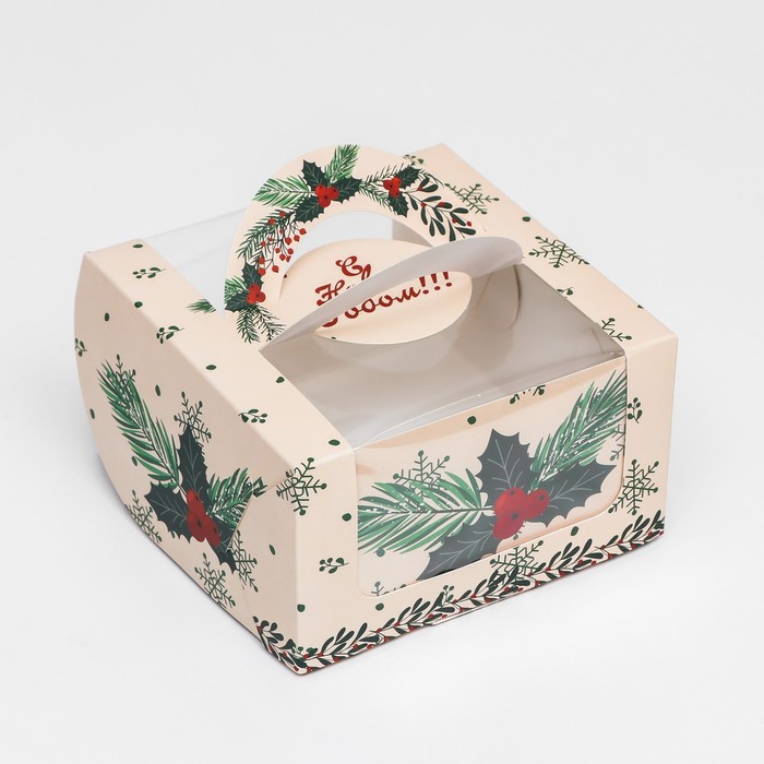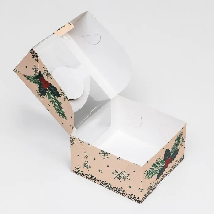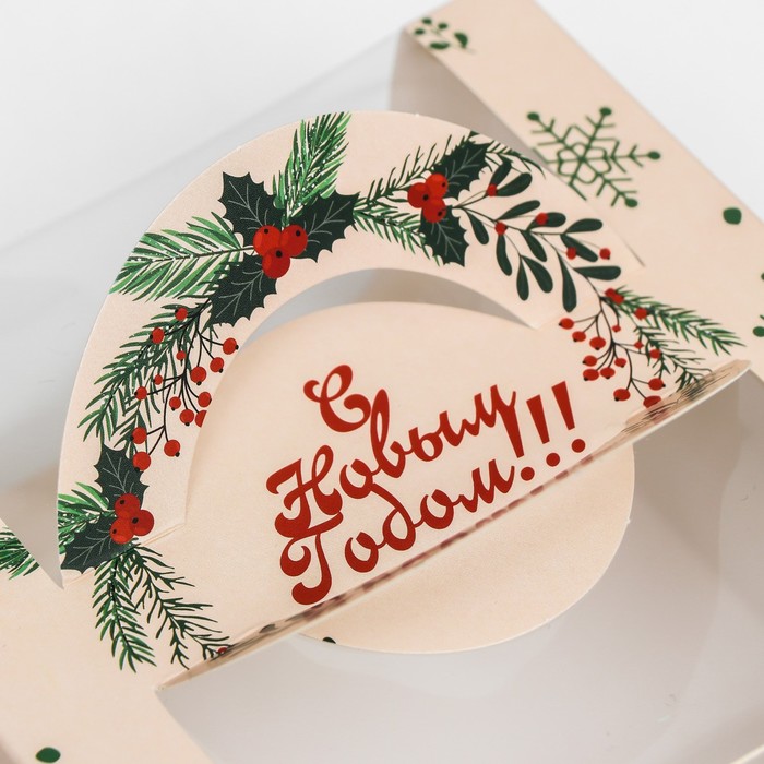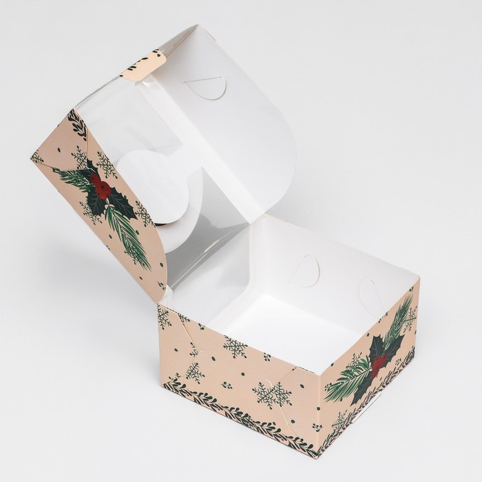 Коробка под бенто - торт с окном «Новогодняя с шишками», 14×14×8 см — Характеристики