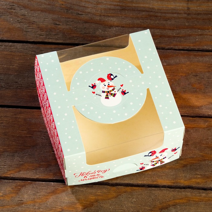 Коробка под бенто-торт с окном "Новогодний снеговик", 14 х 14 х 8 см — Характеристики