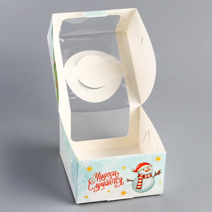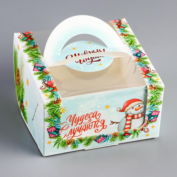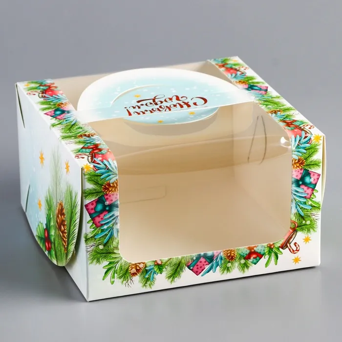 Новогодняя коробка для бенто-торта с окном — это стильная и праздничная упаковка, разработанная специально для небольших тортов, которые станут идеальным подарком или угощением в зимний сезон.