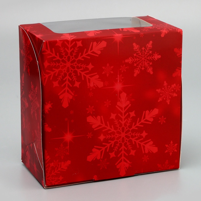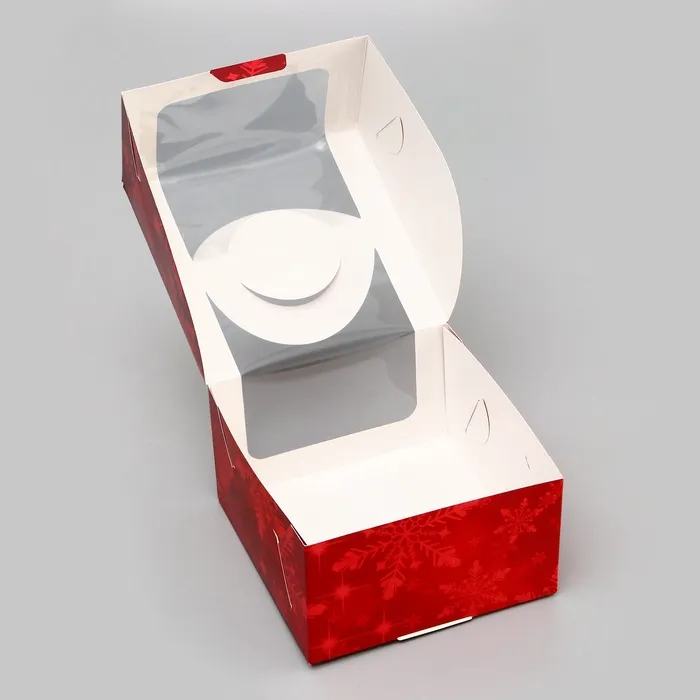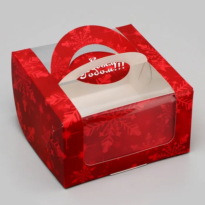 Коробка под бенто - торт с окном «Праздничное настроение», 14×14×8 см, Новый год — Характеристики