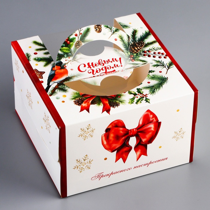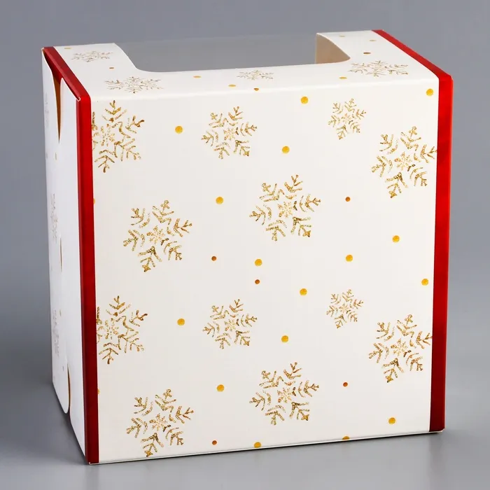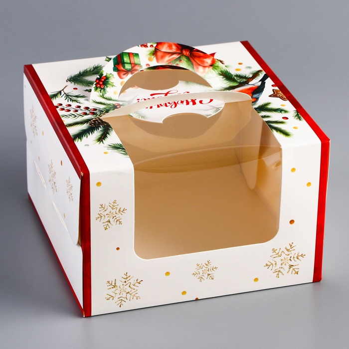 Компактный размер коробки делает её идеальной для порционных тортов, а праздничное оформление — отличным выбором для подарка, новогодних мероприятий или продаж в кафе и кондитерских.