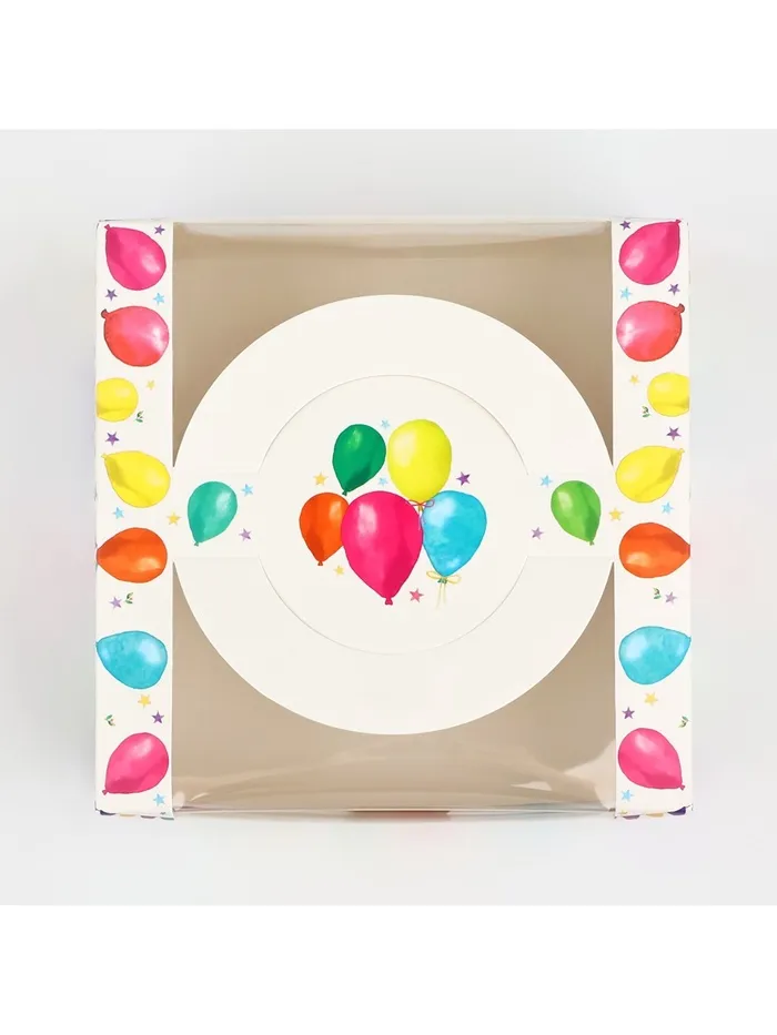 Коробка под бенто-торт с окном «С Днём рождения!», 14 х 14 х 8 см