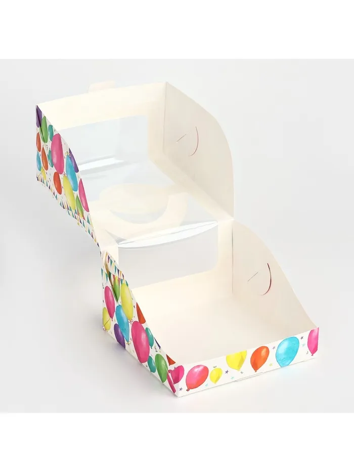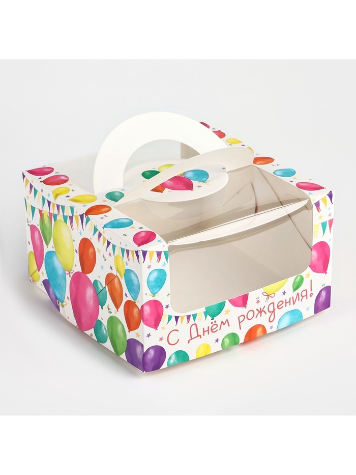 Коробка под бенто-торт с окном «С Днём рождения!», 14 х 14 х 8 см — Характеристики