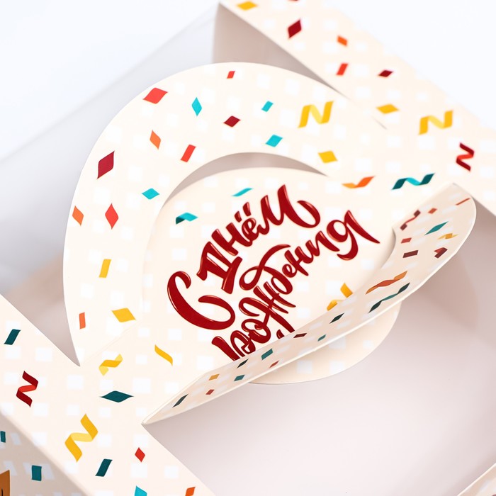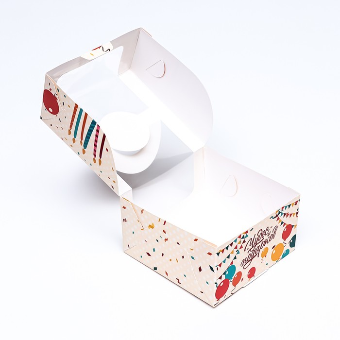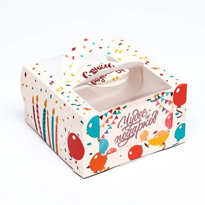 Коробка под бенто - торт с окном «С днём рождения», 14×14×8 см — Характеристики