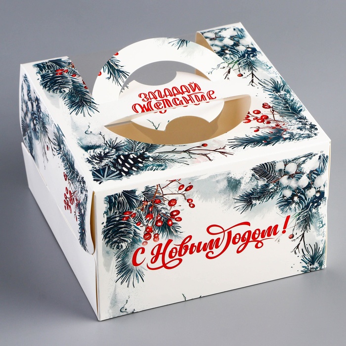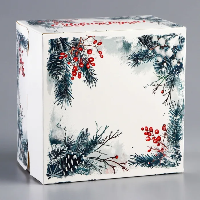 Компактный размер коробки делает её идеальной для порционных тортов, а праздничное оформление — отличным выбором для подарка, новогодних мероприятий или продаж в кафе и кондитерских.