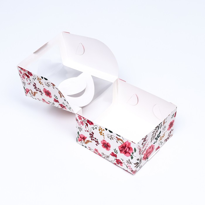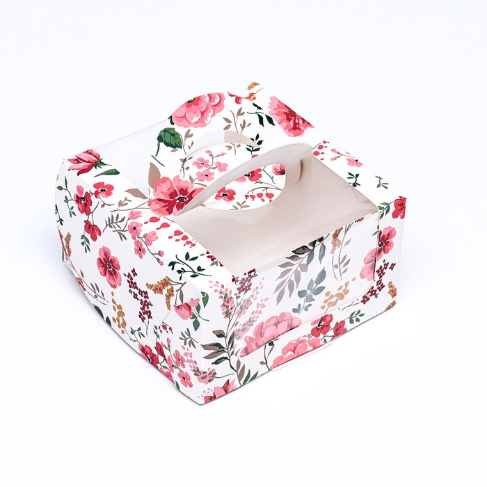 Коробка под бенто - торт с окном «Цветочная роспись», 14×14×8 см — Характеристики