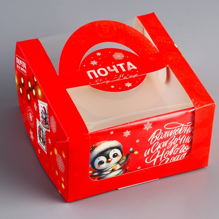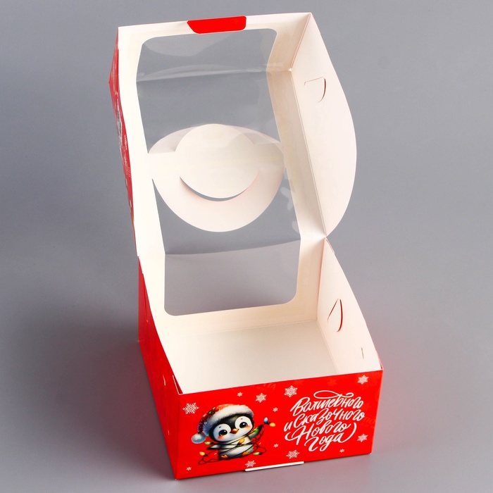 Компактный размер коробки делает её идеальной для порционных тортов, а праздничное оформление — отличным выбором для подарка, новогодних мероприятий или продаж в кафе и кондитерских.