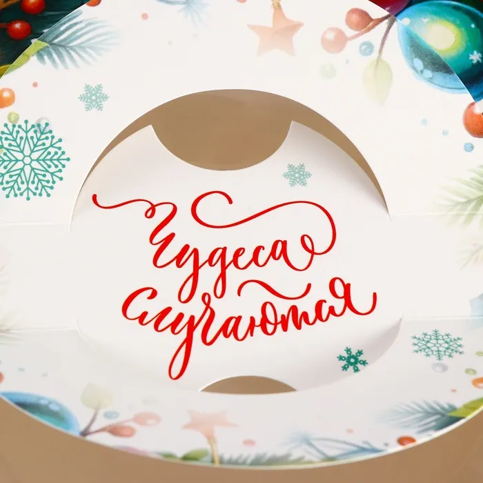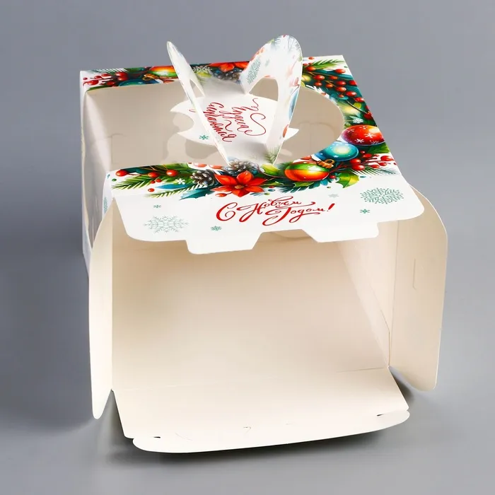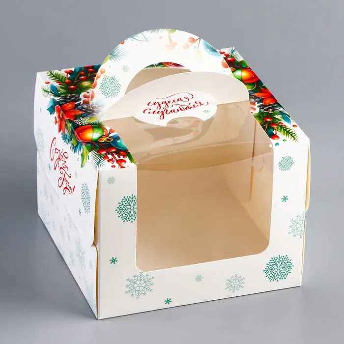 Компактный размер коробки делает её идеальной для порционных тортов, а праздничное оформление — отличным выбором для подарка, новогодних мероприятий или продаж в кафе и кондитерских.