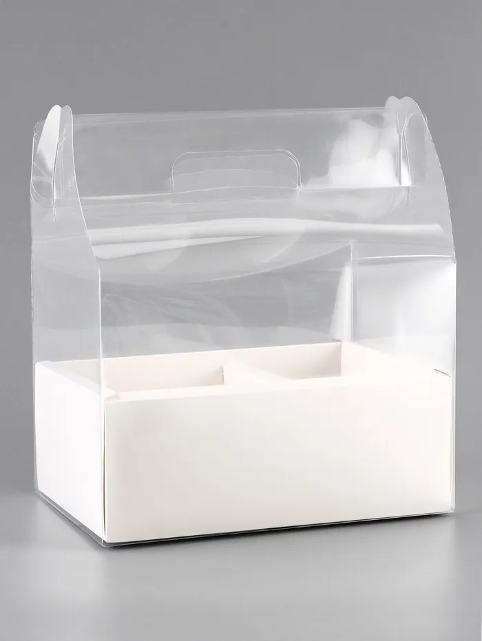 Коробка предназначена для упаковки и транспортировки десертов, включая торты, пирожные и другие сладости. Она имеет достаточную вместимость для того, чтобы защитить продукты от повреждений и сохранить их свежесть.