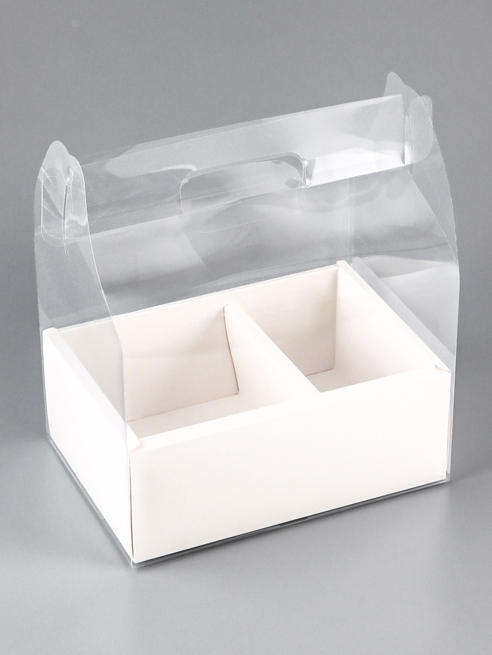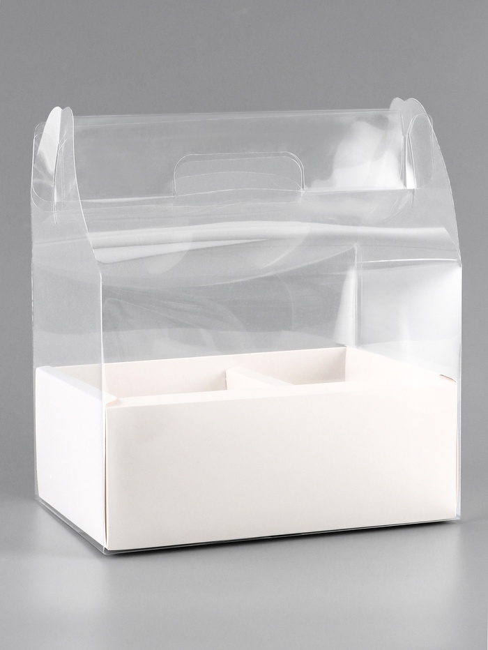 Коробка под десерт с коробкой для торта имеет размеры 26,5 см в длину, 17 см в ширину и 22,5 см в высоту. Она выполнена из белого картона высокого качества, что обеспечивает прочность и долговечность.