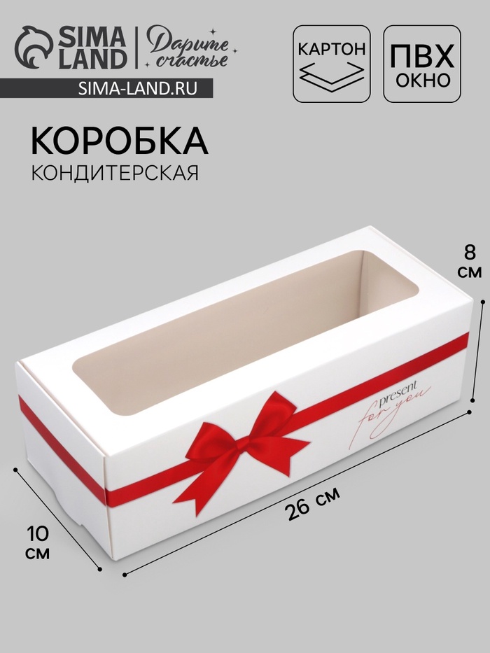 Кондитерская упаковка, коробка для кекса с окном, «Бант», 26 х 10 х 8 см