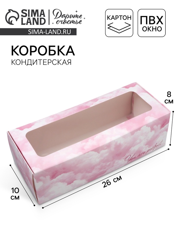 Кондитерская упаковка, коробка для кекса с окном, «Счастливых моментов», 26 х 10 х 8 см