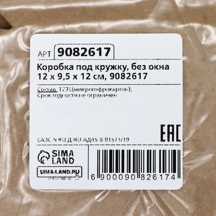 Коробка под кружку, без окна, 12×9.5×12 см — Характеристики