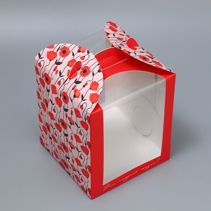 Коробка под маленький торт, кондитерская упаковка, «Маки», 15 х 15 х 18 см — Характеристики