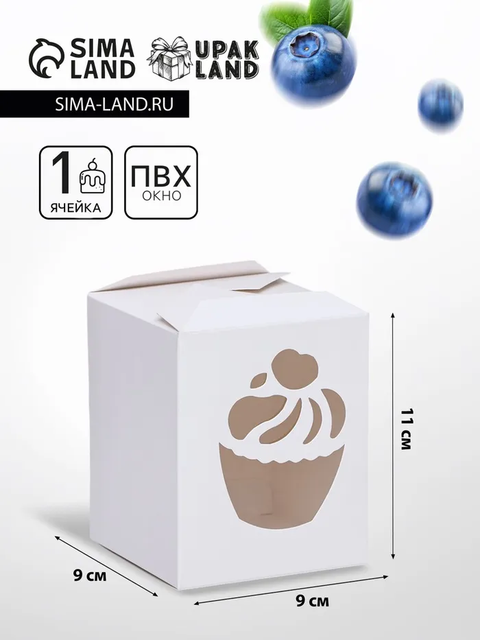 Коробка под пирожное, белая, 9×9×11 см — Характеристики
