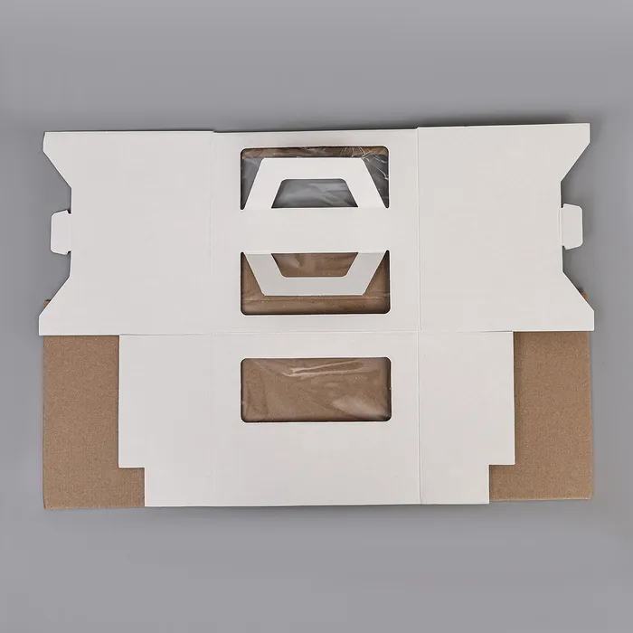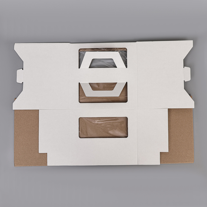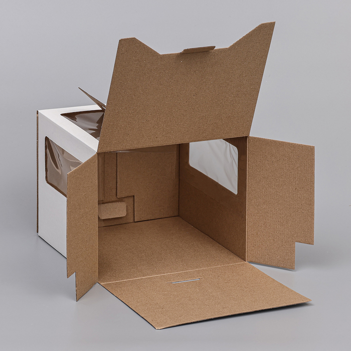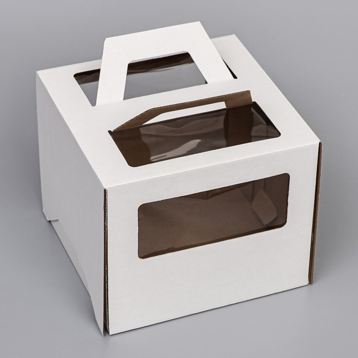 Коробка под торт 2 окна, с ручками, белая, 24×24×20 см — Характеристики