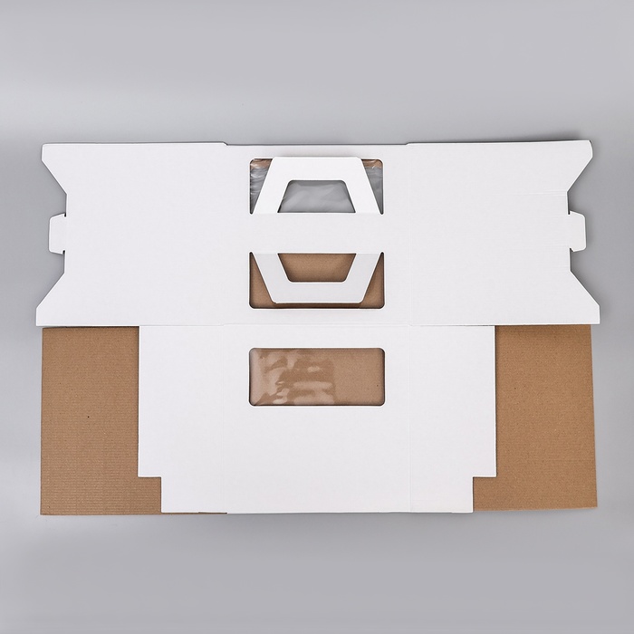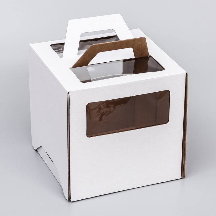 Коробка под торт 2 окна, с ручками, белая, 24×24×24 — Характеристики