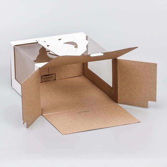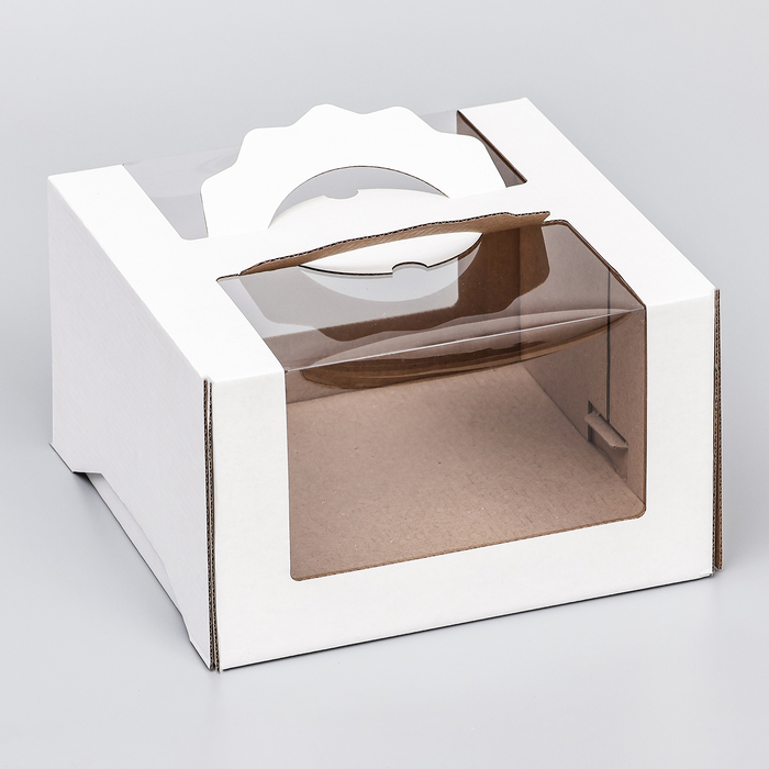 Коробка под торт 2 окна, с ручками, белая, 25 х 25 х15 см — Характеристики