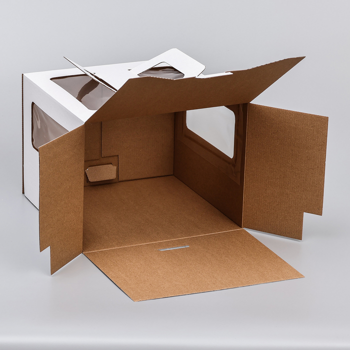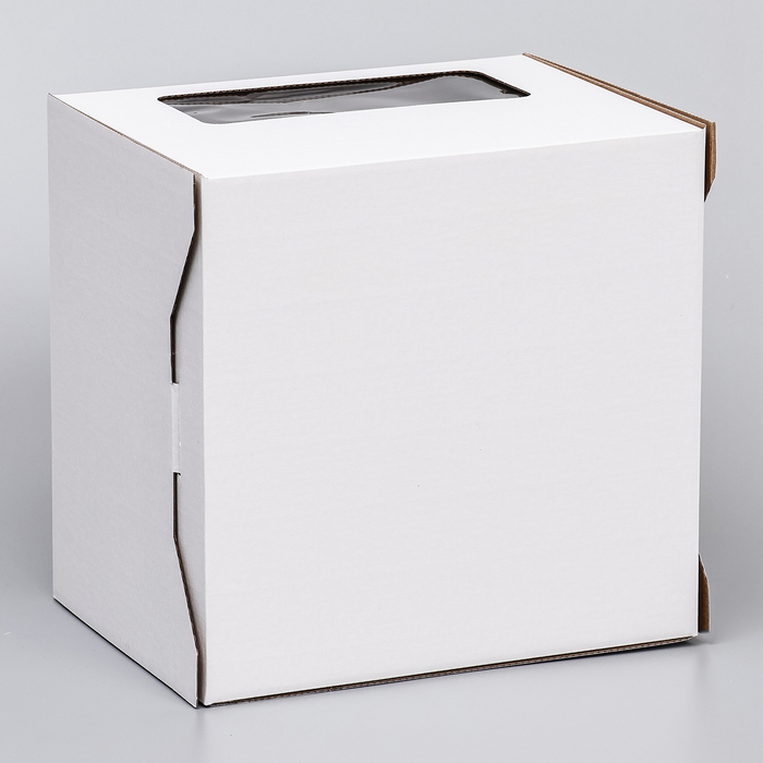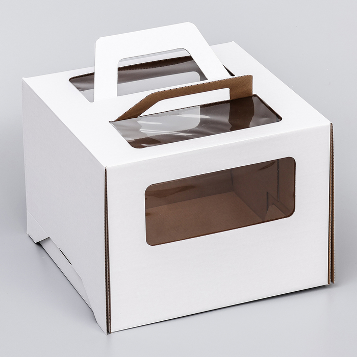Коробка под торт 2 окна, с ручками, белая, 26×26×20 см — Характеристики