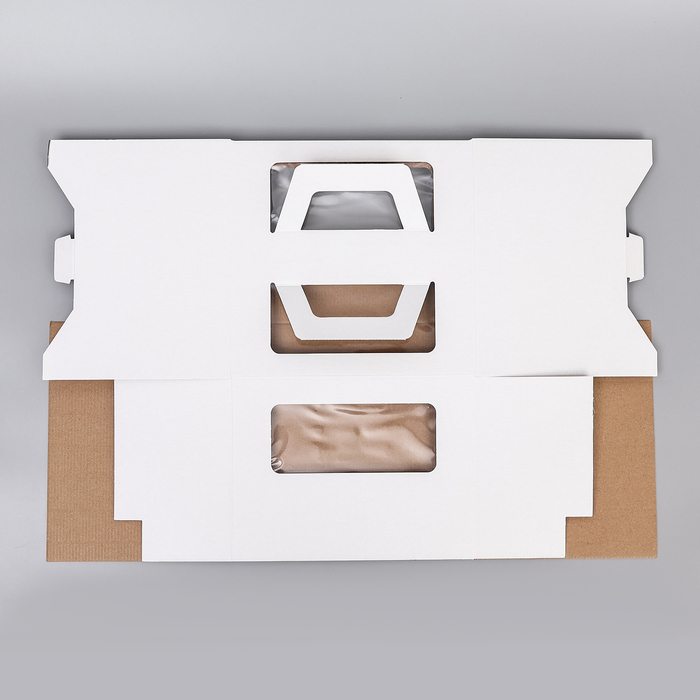 Коробка под торт 2 окна, с ручками, белая, 26×26×20 см