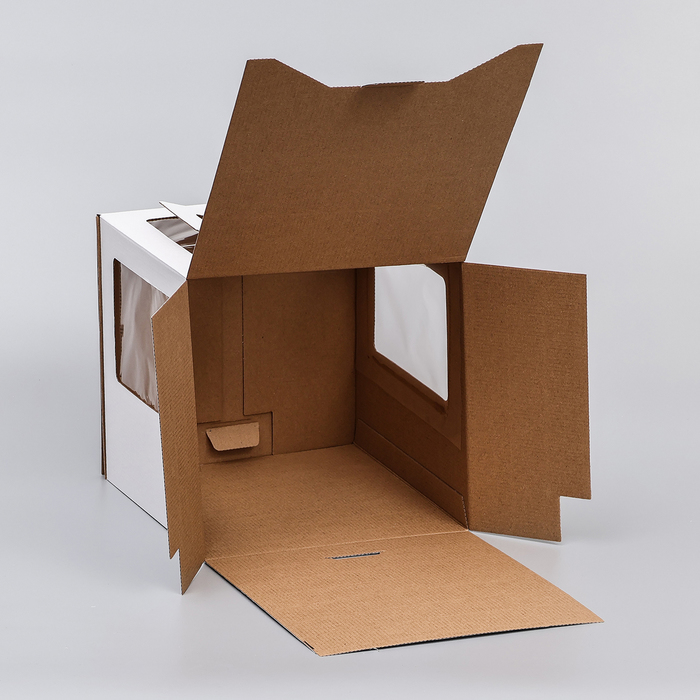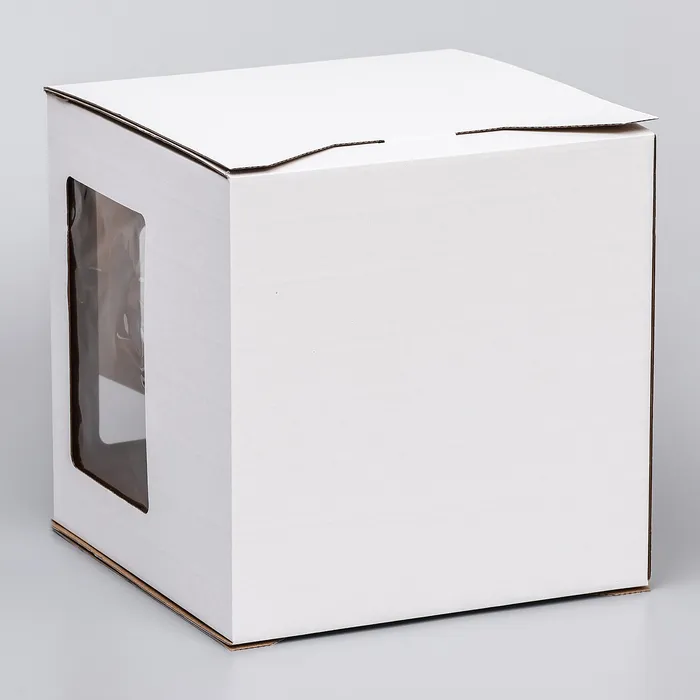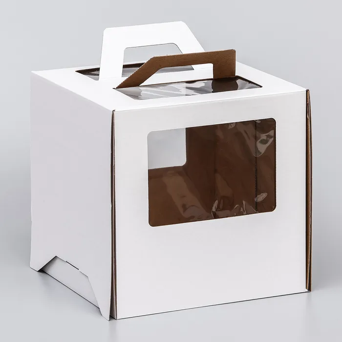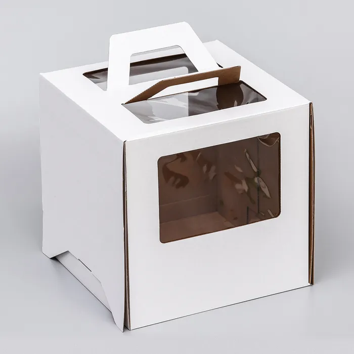 Коробка под торт 2 окна, с ручками, белая, 26×26×26 см — Характеристики