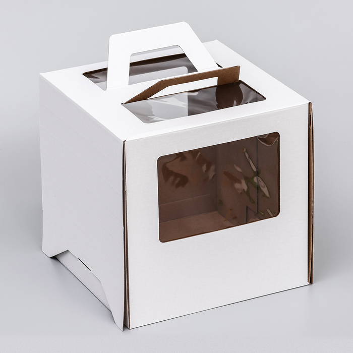 Коробка под торт 2 окна, с ручками, белая, 26×26×26 см