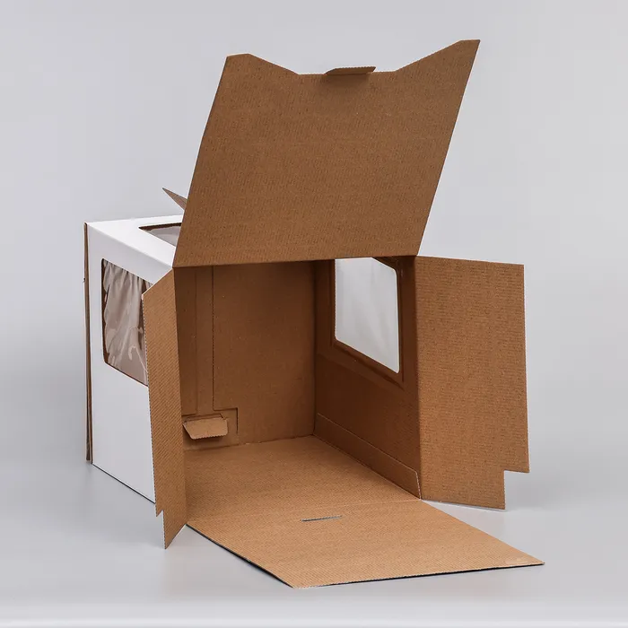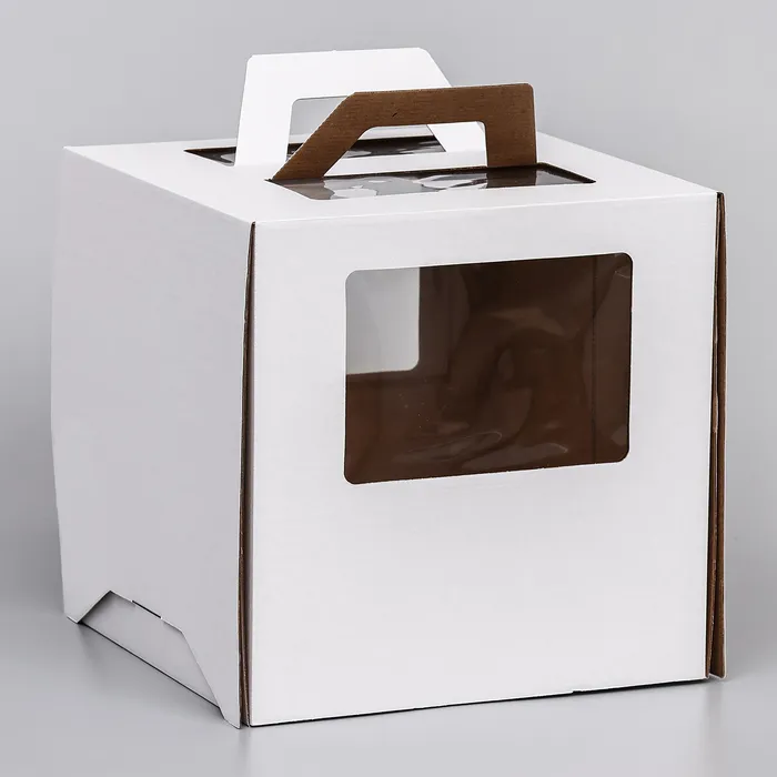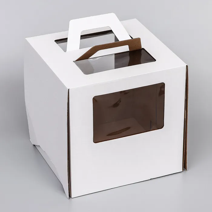Коробка под торт 2 окна, с ручками, белая, 28 х 28 х 28 см — Характеристики