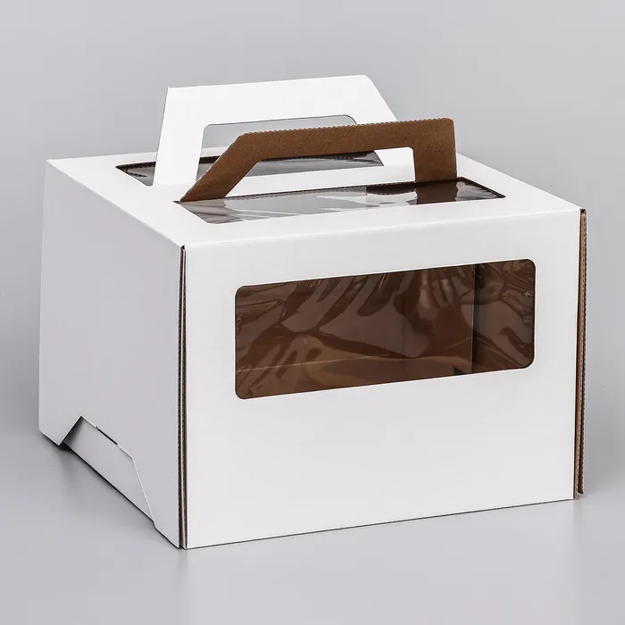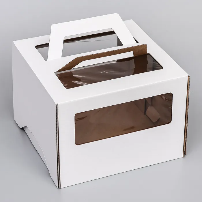 Коробка под торт 2 окна, с ручками, белая, 28×28×20 см — Характеристики