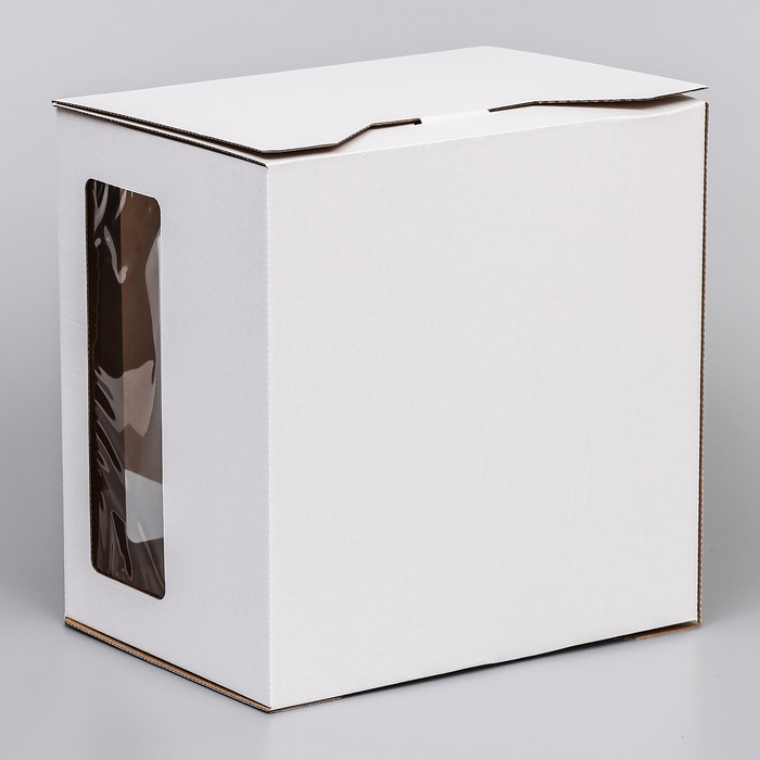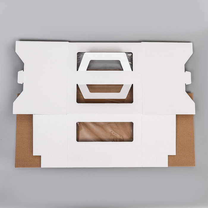 Коробка под торт 2 окна, с ручками, белая, 28×28×20 см