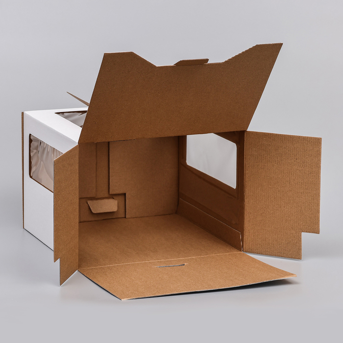 Коробка под торт 2 окна, с ручками, белая, 28×28×20 см — Характеристики