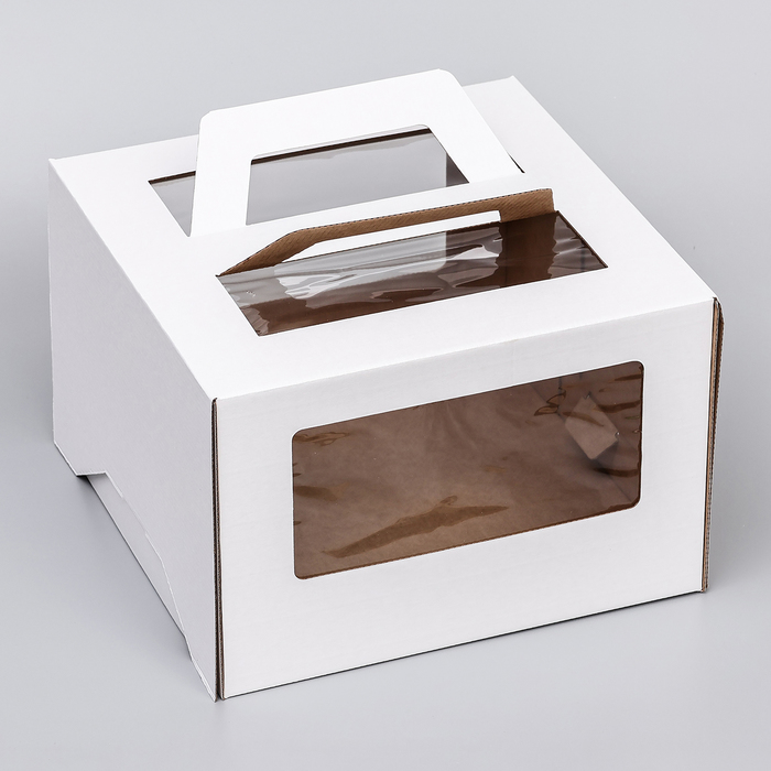 Коробка под торт 2 окна, с ручками, белая, 30 х 30 х 20 см — Характеристики
