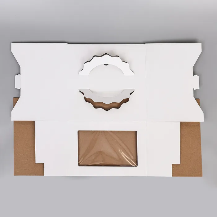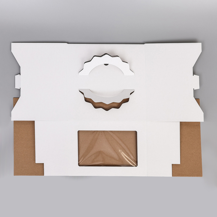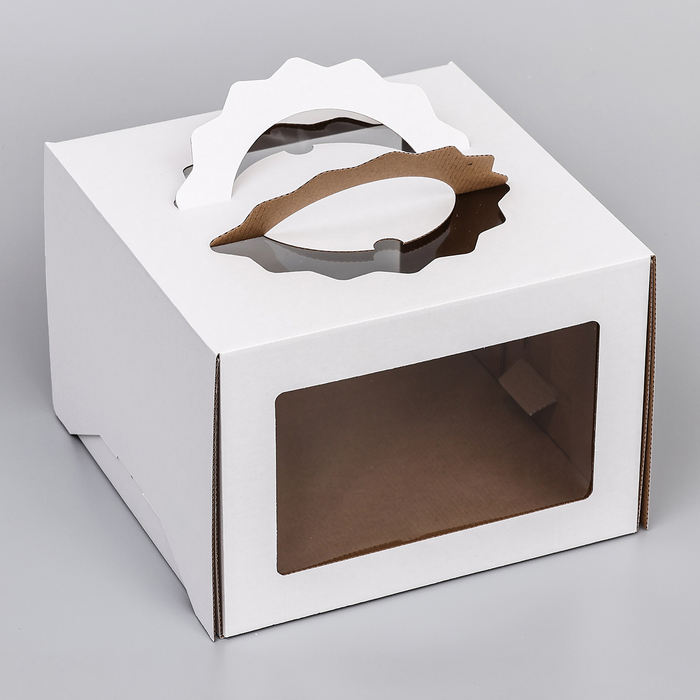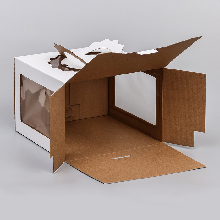 Коробка под торт 3 окна, с ручками, белая, 28×28×20 см — Характеристики