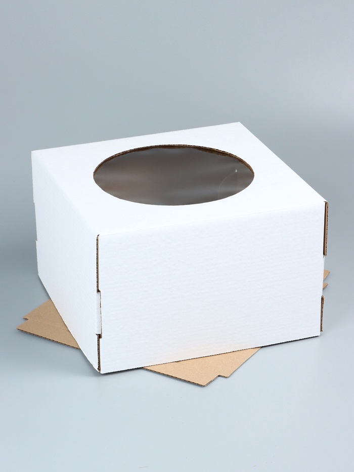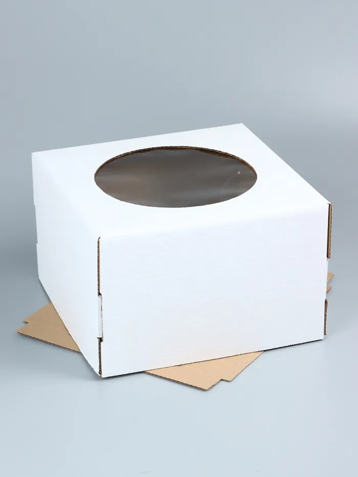 Коробка под торт, с окном, белая, 30×30×19 см — Характеристики