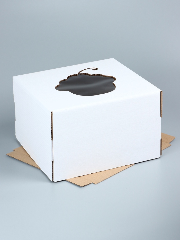 Коробка под торт с окном, «Пироженка», с усиленным дном, белая, 30×30×19 см — Характеристики
