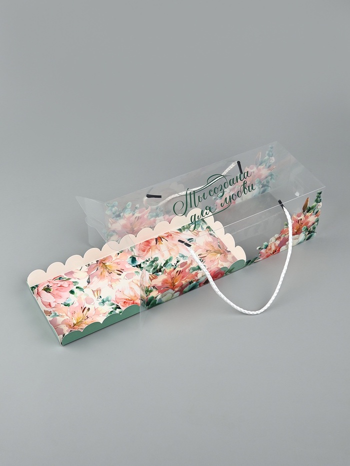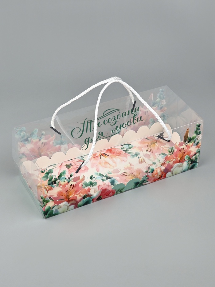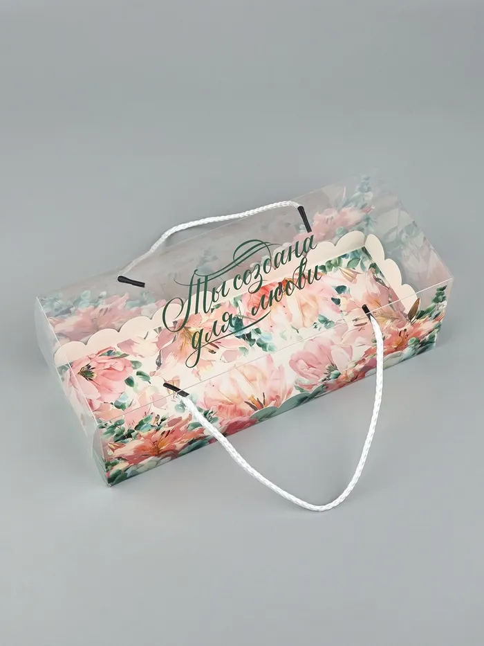 Коробка под зефир c ручками «Нежные цветы», 27 х 11 х 9.5 см, кондитерская упаковка — Характеристики