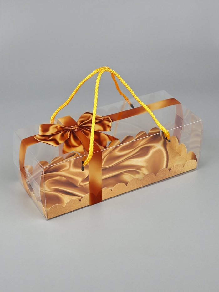 Коробка под зефир c ручками «Золотой бант», 27 х 11 х 9.5 см, кондитерская упаковка — Характеристики
