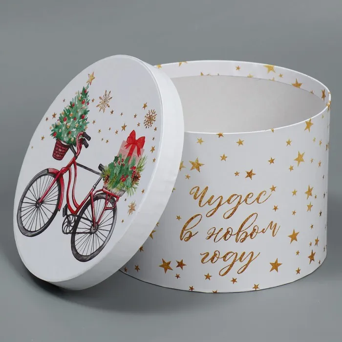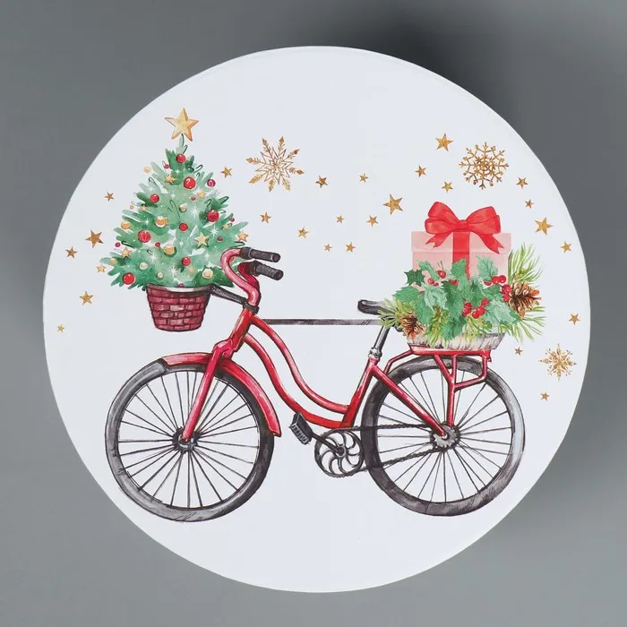 Круглая подарочная коробка «Снегири», 14 х 16 см, Новый год